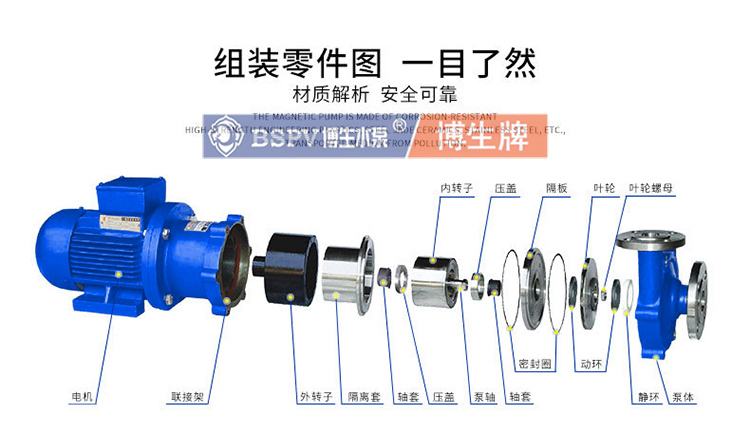 上海博生水泵制造有限公司生產的不銹鋼磁力泵 20CQ-12P耐堿不銹鋼 防腐蝕磁力泵 上海磁力泵廠家CQ型磁力驅動泵(簡稱磁力泵),CQG型耐高溫磁力驅動泵(耐溫≤250℃)(簡稱磁力泵)是將永磁聯軸器的工作原理應用于離心泵的新產品,主要材料有不銹鋼、增強聚丙稀,工程塑料。設計合理,具有全密封、無泄漏、耐腐蝕的特點。